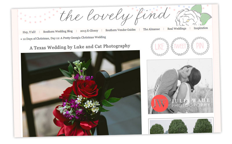 By post-Christmas haze, I mean that weird "I ate too much and I never want to wear anything but elastic waist pants again" feeling that I have right now.BUT! I am happy to come out of my haze to share that today the adorable Southern wedding blog, The Lovely Find, has published one of our weddings!