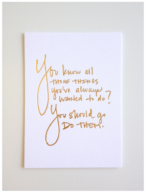 I'm reminded of this quote that is all over Pinterest from Lara Casey. If you don't know who Lara is, she is the founder/editor of Southern Weddings Magazine which I believe is the best magazine available to those of us lucky enough to be from the South. (Y'all know we are lucky, right?) She recently started selling these beautiful letterpress gold foil versions of some of her handwritten mantras. Here's a reminder from her shop!