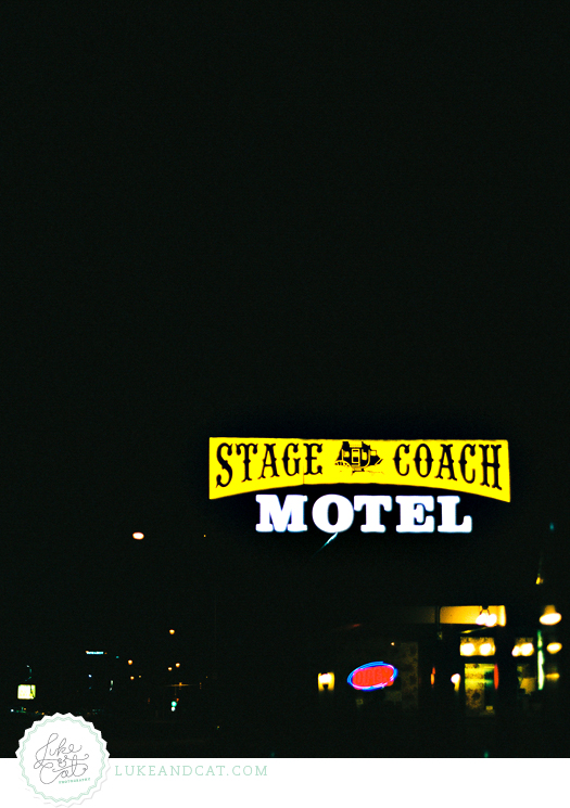 As we drove down main street, we loved seeing all of the motel signs. Yes, there were a few modern hotels, but the majority were little mom-and-pop type motels that blended in seamlessly with the beautiful rolling hills surrounding Cheyenne. You can't really appreciate the signs during the day, but at night the motel signs are so cool! So after the party was over, after the wedding reception, Cat and I drove around Cheyenne with our windows down, enjoying the cool breeze, and snapped some pictures of the signs that captivated us so much. We shot all of these on film, and to say I was a little nervous to get the scans back would be an understatement. Thankfully, we were so pleased with how the scans turned out when we got them back.