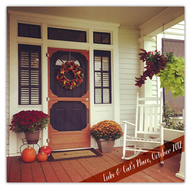 I'm ready for fall. I was looking through some old Instagrams of Luke's last night and saw this photo from last fall of our front door, which was decorated and ready for cooler weather. I can't wait for this again! This year, we're growing our own pumpkins (well, we're trying.... but Myrtle Bo keeps getting in 'Luke's Punkin Patch' and mowing down the leaves) so Lord-willing we're going to have pumpkins galore! We already have about 5 big pumpkins growing.
