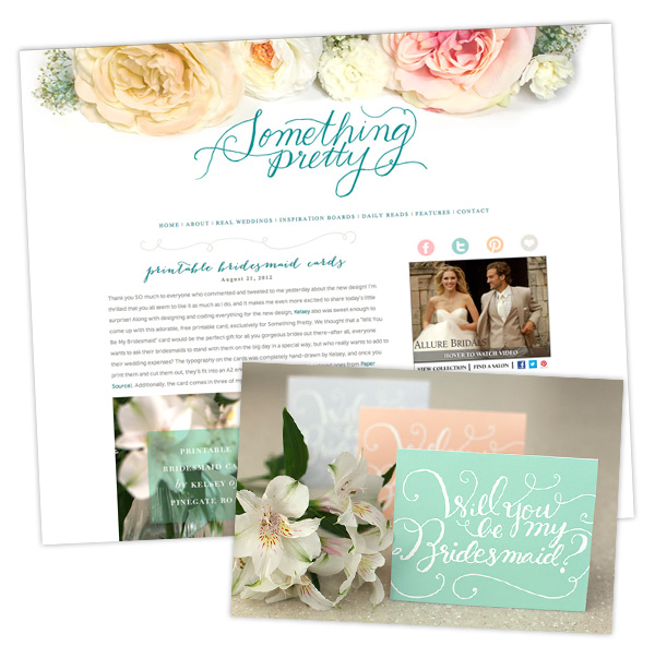 Now there are plenty of ideas to make it more special for your leading ladies! I was browsing around on the internet the other day looking at calligraphy and saw these adorable free bridesmaid printables on Something Pretty. By the way, how beautiful is this website?