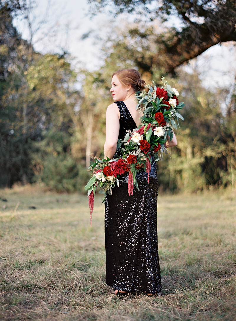 While we originally met Lindsey and Dane through Lindsay's Houston wedding planning and design business, our relationship with these two has evolved into what is sure to be a life long friendship. When we found out that they were expecting their first baby around Valentine's Day, we knew that we wanted to do something special for their maternity shoot. A floral boa in the 2015 color of the year, marsala, combined with the black sequin designer gown were the perfect compliments to this glowing mother-to-be.