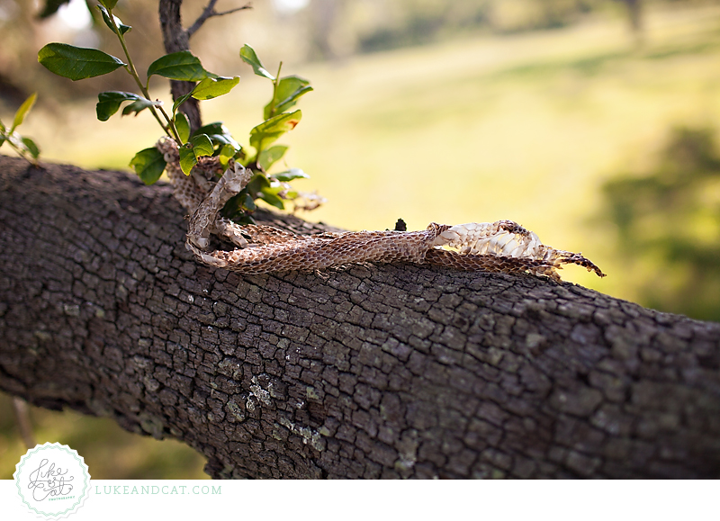 A few days ago, Cat and I were out shooting, and I was trying to show someone where to stand. I leaned against this big sweeping tree branch and that is when Haley said "There is a snake!"