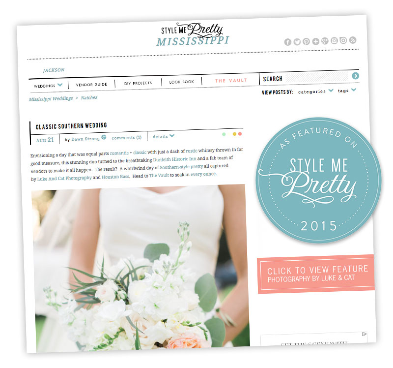 Featured on Style Me Pretty :: Dunleith Plantation Wedding
