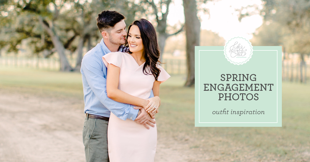 When photographing our engaged couples, our ultimate goal is to capture their love for one another, while also keeping it timeless and romantic. We tell our couples to dress in their best and to stick to one outfit that they love. But deciding on an outfit that you feel your best in can be tough. Ladies, a dress layered with the perfect accessories looks great. Guys, a fitted button down ties the whole look together nicely. You may even add a sports coat if you're up for it! So to give a little fashion inspiration, here are some of our favorite spring engagement outfits that looked and photographed beautifully, but also had our couples feeling confident. These outfits worked well because the ladies were feeling their best in their feminine dresses that were the perfect colors, and the guys both had a well-fitted button down on and one even had a sports coat that tied everything together for that perfect photo finish.