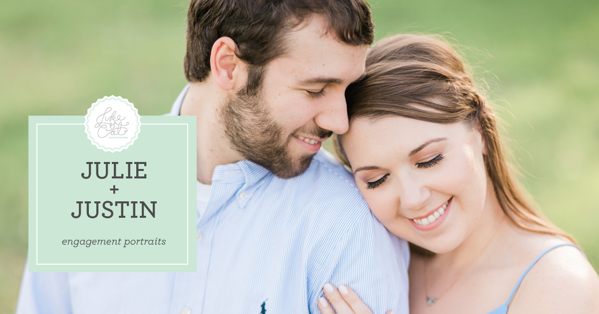 What a treat it was to shoot Julie and Justin's engagement portraits. We were a little skeptical the day of their shoot when we saw dark clouds rolling in from a distance, but lucky for us, Justin is a meteorologist and had been tracking the clouds all day. He was 100% accurate when he predicted that the clouds would be gone just thirty minutes before their shoot. It turned out to be a gorgeous evening filled with love and not a dark cloud in sight.