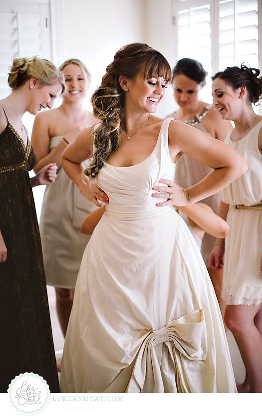Katie had told us before the big day that she wanted something more for her formal portraits. She said that she didn't want the same ol' same ol' where people are standing in front of an alter with stuffy smiles. She wanted portraits that captured personalities and relationships. We're going to do a whole post about her amazing formal portraits, but we couldn't resist one of our favorites from her and the bridesmaids.