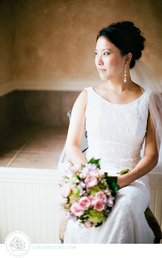 Take Katie for example (below) who chose to have her final preparations done in her parents' home. One of the larger bedrooms in the house was cleared out/furniture pushed aside, and the window shades were opened. Katie looks beautiful in the lovely window light, and is clearly happy to be in someplace that is familiar and means something to her!