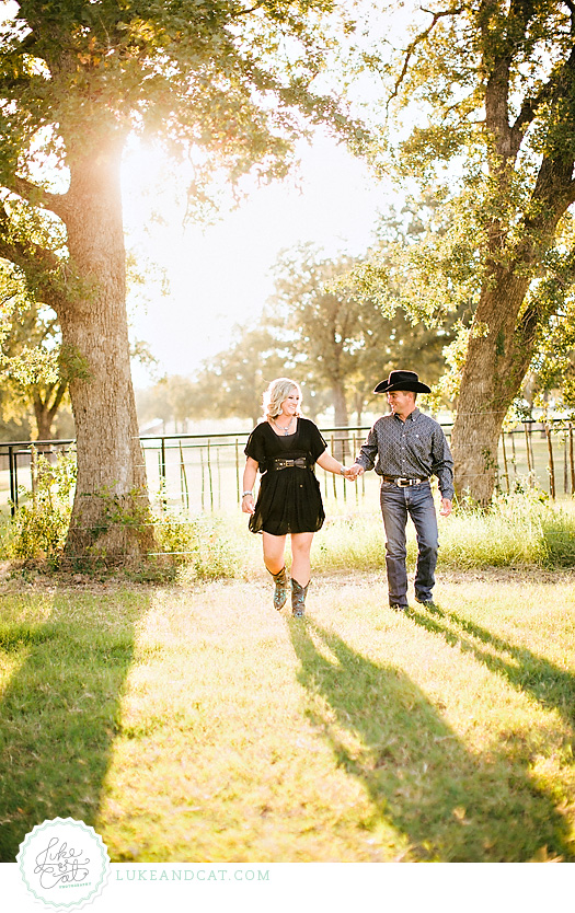 Katie and Jed brought us to their cattle ranch in Weatherford (near Fort Worth) for their engagement session. It's always fun to go on location for photo sessions, because it's new scenery and places we've never seen. As soon as we saw their beautiful place, we couldn't wait to explore around and shoot their session.So here's Katie and Jed, a couple who is so natural around one another and clearly very much in love!