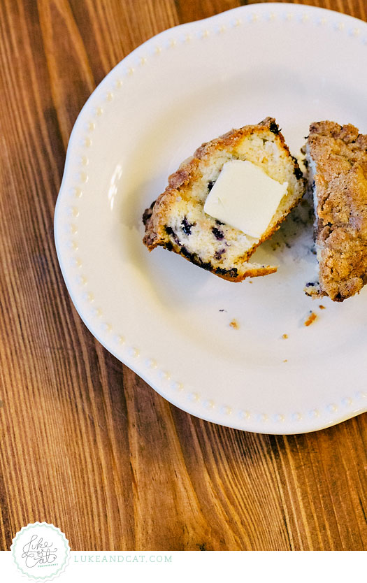 It's really nothing special, it's a packet of Betty Crocker blueberry muffin mix, and I use milk instead of water like the packet calls for. Then, because Luke told me his favorite part of any muffin was streusel topping, I looked up a recipe for streusel topping (which is just sugar, flour, cinnamon, and butter) and sprinkled that on top of it before baking.