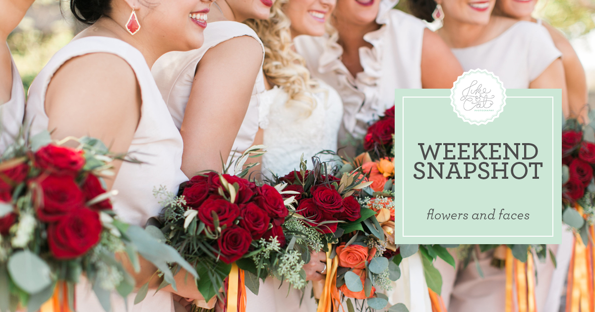 Roses and rosy cheeks! Faces and flowers! It’s hard to go wrong with a photo that features gorgeous bouquets, a beautiful bride, and bridesmaids. Today’s Weekend Snapshot is all about how to get a great flower-power shot.